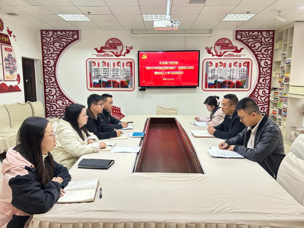 为深入贯彻落实习近平总书记关于加强和改进民族工作的重要思想,激励党员牢记初心使命、勇于担当作为,进一步铸牢中华民族共同体意识,10月23日下午,机关第六党支部在新蒲校区行政楼5楼521党员活动室开展“铸牢中华民族共同体意识”主题党日活动。党支部全体党员、入党积极分子、群众参加活动。