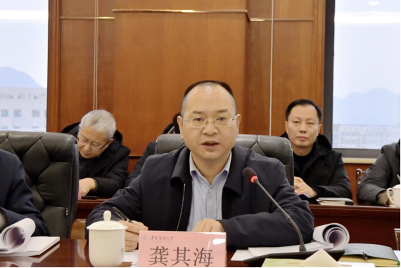 12月26日上午,我校在新蒲校区行政楼五楼二号会议室召开“十五五”事业发展规划编制工作推进会。校领导出席,各相关职能部门主要负责人、二级学院党政主要负责人、各直属附属医院院长参加,珠海校区同步视频参会。会议由学校党委副书记、校长龚其海主持。